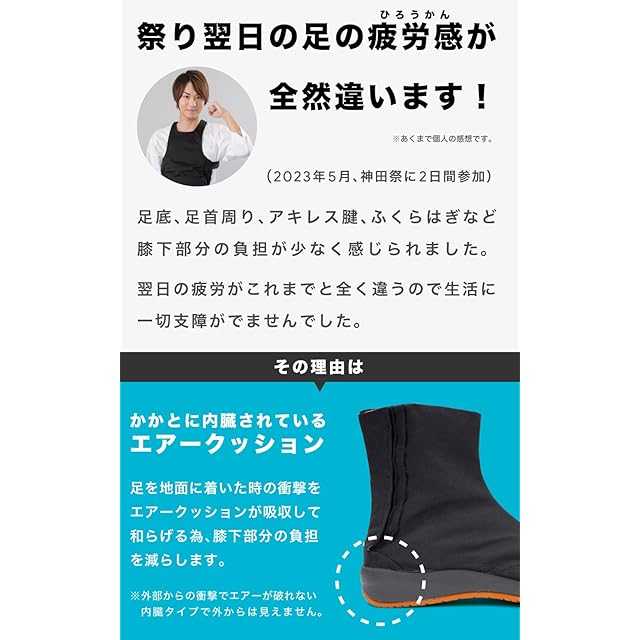 商品名:[あい藍] エアクッションが衝撃を吸収 コハゼ 地下足袋 祭りたび (22.5cm〜29.0cm) (日本の靴のサイズ寸法, 大人, 数値)ブラック29.0 cm
