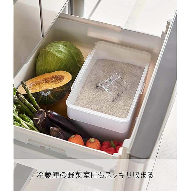 商品名:山崎実業(Yamazaki) 密閉 シンク下 米びつ 5kg 計量カップ 付 ホワイト 約W30XD19.7XH19.2cm タワー お米ごっそりライン 最後まできれいにすくえる 3377