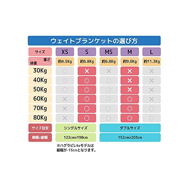 【少し重めな設計とサイズ】Sサイズは122cm×198cmで6.8Kg、Mサイズは152cm×203cmで9.0Kg。体重に対する選び方は商品紹介の中の推奨表をご覧下さい。(自分の体重×0.1)+1Kg~3Kgをお好みでお選びください。