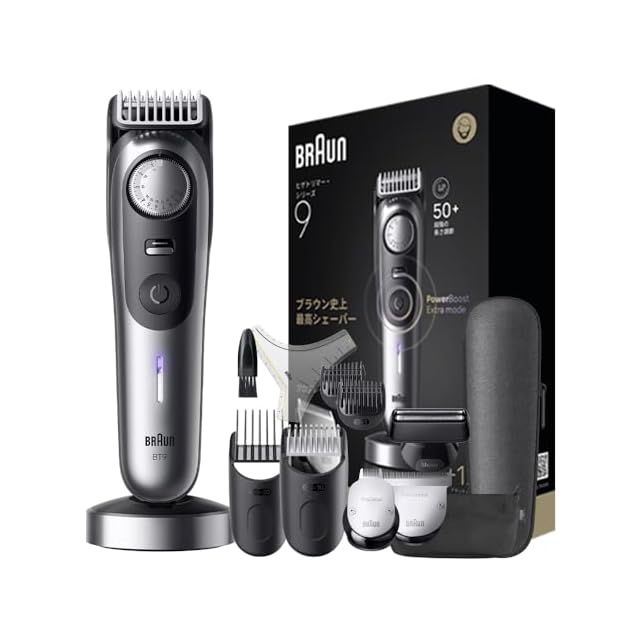 商品名:ブラウン シリーズ9 ヒゲトリマー BT9560 コーム4種 アタッチメント3種 ヒゲ形テンプレート 充電スタンド ポーチ 携帯用ケース 掃除用ブラシ
