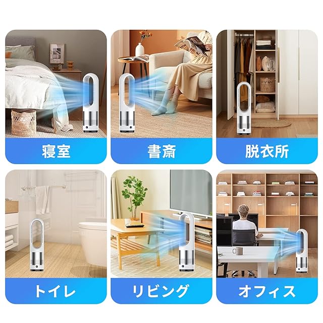 商品名:【2025年冷暖兼用・省エネ】セラミックヒーター 扇風機 羽根なし タワーファン DCモーター スリム型 静音リビング扇風機 8段階冷風&3段階温風調節 微風&強風モード 100°首振り 9Hタイマー 温風 冷風 広範囲送風 リモコン 安全装置付 節電 コンパクト 家庭用 子供部屋/リビング/寝室/書斎/キッチン/オフィス用 組み立て不要お手入れ簡単 羽根無し 日本語説明書 PSE認証済 ホワイト