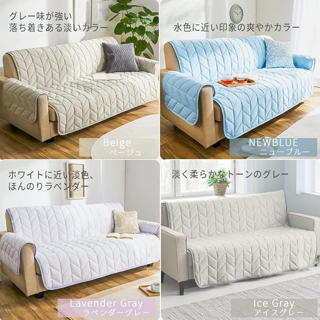 商品名:ベルーナ(BELLUNA) ソファーカバー 3人掛け 2人掛け 夏用 冷感 肘付き 肘なし 夏 厚手 接触冷感 ひんやり 抗菌防臭 吸汗速乾 洗える もちもち 取り付け簡単 裏面すべりにくい加工付 おしゃれ (285114-804)