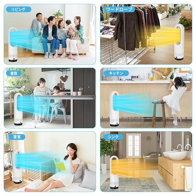 【2025最新冷暖両用 扇風機&省エネ】弊社の扇風機 羽なし 冷風機は、8段階の風量(最大48W)と3段階の温風(弱600W/中900W/強1400W)があり、自由に切り替えることができます。一年中使える 冷風機 です。暑い夏は 涼しい扇風機 として、寒い冬は電気ヒーターとしてお使いいただけます。冷房・暖房兼用ヒーターで、快適な冷房・換気効果が得られ、四季を通じて快適な室内環境を実現します。 さらに、当社のタワーファン 冷風機に使用されている DC モーターファンは、AC モーターに比べて電気代を約 3 分の 1 ~ 4 分の 1 削減できます。扇風機を頻繁に使用したり、エアコンと併用したりする場合は、電気代が大幅に節約できます。