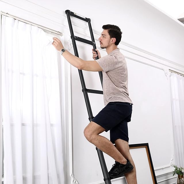 RIKADE 伸縮はしご 耐荷重150kg 軽量 持ち運びやすい 折り畳み 伸縮梯子 多機能アルミはしご 自動ロック スライド式 伸縮自在 梯子 室内室外両用 スライド式 (ブラック, 2.6m)