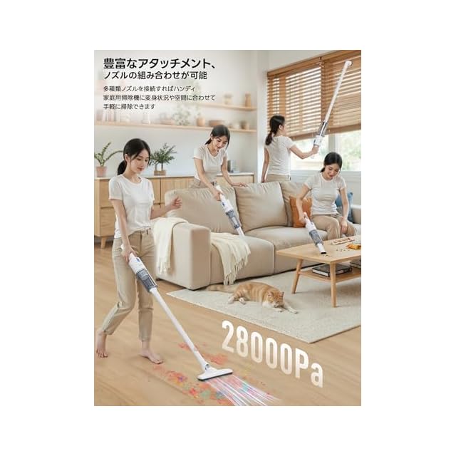 商品名:掃除機 コードレス【2025革新版】 28000強力吸引 40分間連続稼働 LEACCO 軽量 収納スタンド付 Type-C充電式 ハンディ スティッククリーナー vacuum cleaner cordless そうじき 電気掃除機 多種類ノズル 一人暮らし 家庭用 車用 PSE認証済み 最長3