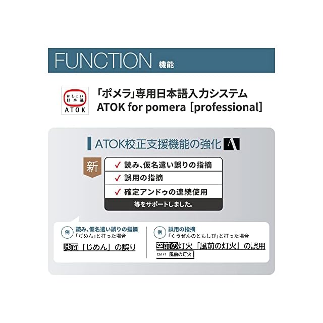 最高の「書く」を味わえるツールとして、作家やライターなどプロにも愛される「ポメラ」がさらにパワーアップ。約24時間の連続使用、USB Type-C対応、充電確認用LEDを搭載し、ハードウェア面での充実を図りました。ソフトウェア面では、ATOK校正支援機能を強化し、脚本や台本の作成に適した「シナリオモード」も追加。様々な機能のアップデートをおこない、より効率的な文章作成をサポートします。