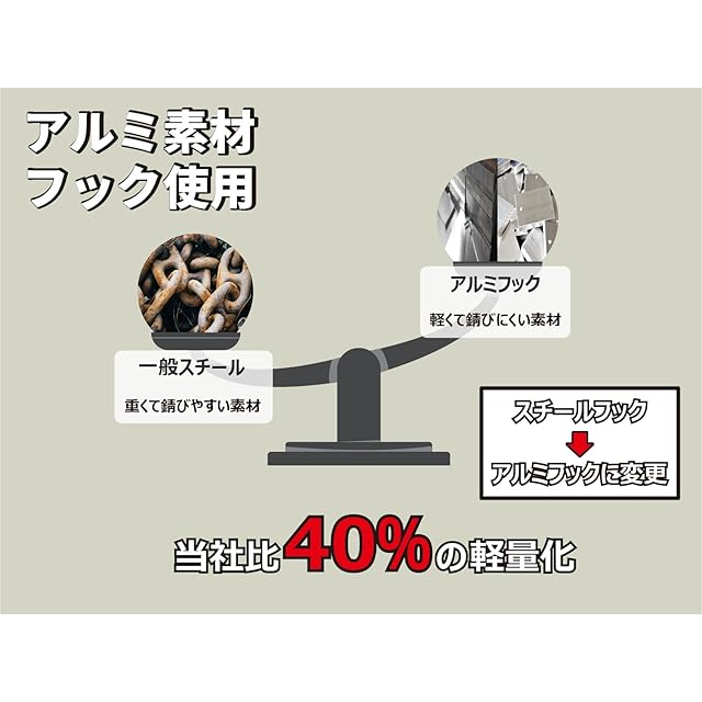 【特長1】 超軽量 高強度 アルミ合金 フック使用