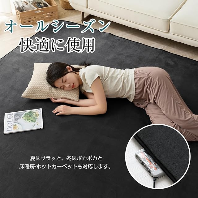 商品名:Housecover カーペット ラグ ラグマット滑り止め付 洗える 185×185cm 約2畳 絨毯 防ダニ 抗菌 防臭 オールシーズン快適に使用 床暖房 ホットカーペット対応 ふわふわ肌触り フランネルラグ ブラック
