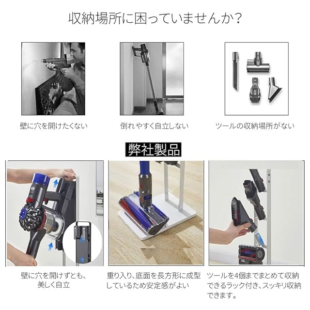 【収納が便利です】掃除機の各種パーツを収納し、様々なヘッドや部品を掃除機本体と一緒に収納出来ます。ダイソンコードレス掃除機専用スタンド、簡単に収納可能です。掃除機の本体を収納スタンドの上部に置き、掃除機の付属品も収納スタンドの上に置くことができるので、 落下や紛失の心配がなく、収納スペースも取りません。