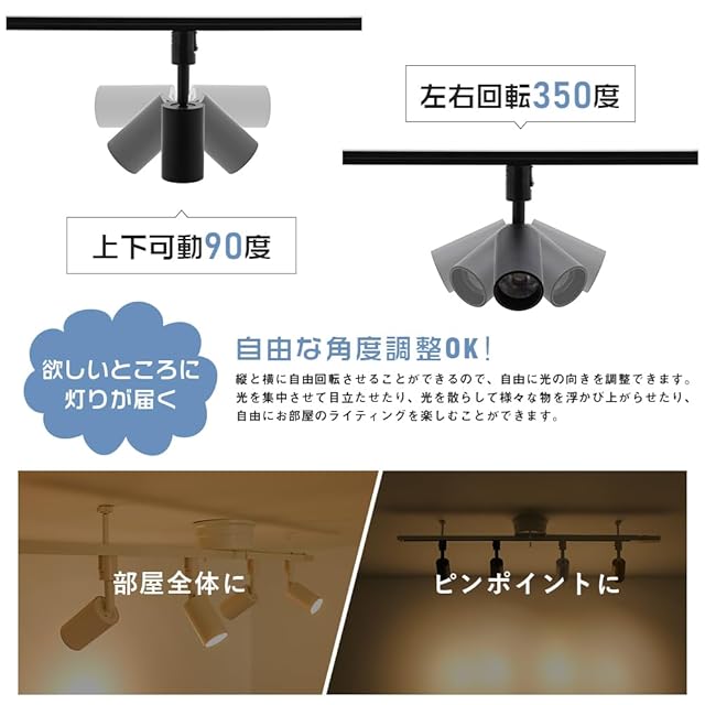 【レール専用、取付簡単】:配線ダクトレールが設置してあれば、煩わしい配線工事なし、そのままダクトレールに自由に取付できます。電気資格なしの素人やひとり暮らしの女性も簡単取付可能です。