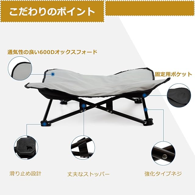 商品名:LuckyCode ドッグコット ペットコット 犬用コット ペットベッド 犬用ベッド 折りたたみ 洗える ベッド アウトドア キャンプ コット 犬 猫 ペット (ダークグレー, 70x70x20cm)