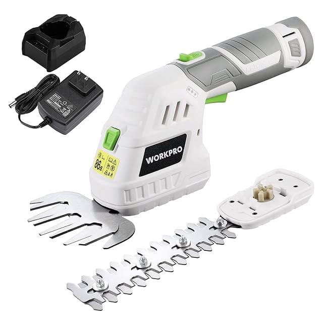 WORKPRO 芝生バリカン 12V充電式 生垣バリカン 電動芝生バリカン 芝刈り機 一台二役 コードレス バッテリーバック・草刈りブレード・剪定ブレード付き ガーデン 植木 剪定 園芸