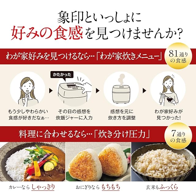 しゃっきりからもちもちまで好みの食感に炊き分ける7通りの「炊き分け圧力」