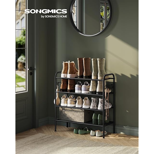SONGMICS シューズラック スリム 省スペース 4段 玄関 おしゃれ 大容量 下駄箱 靴箱 整理 組立簡単 68x28x70.4cm LMR069B01