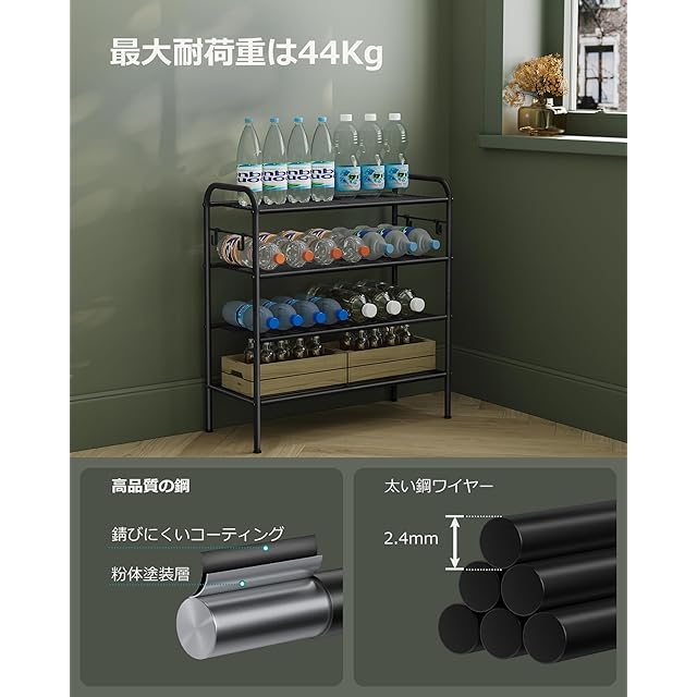 【靴の簡単な収納】 この調整可能なメタルシェルフの各層は、快適に3〜4足の靴を収納するのに十分な広さがあります。お気に入りの靴に簡単にアクセスし、きちんと収納出来ます!