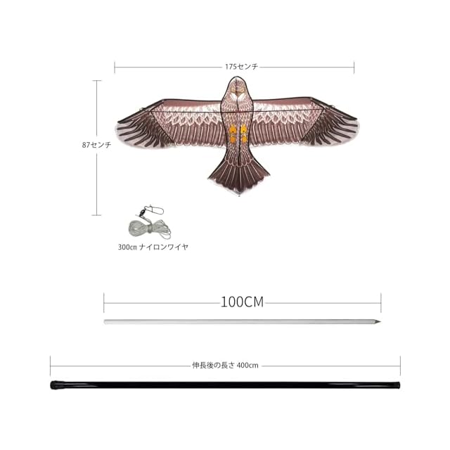商品名:eyijklzo 鳥よけ 鷹 カイト イーグル カラスよけ 鳩よけグッズ カラス 撃退 鳩よけ ポール付き イーグルカイト 軽量 防鳥防獣 鷹カイト 害鳥対策 農作物被害対策 4mポール