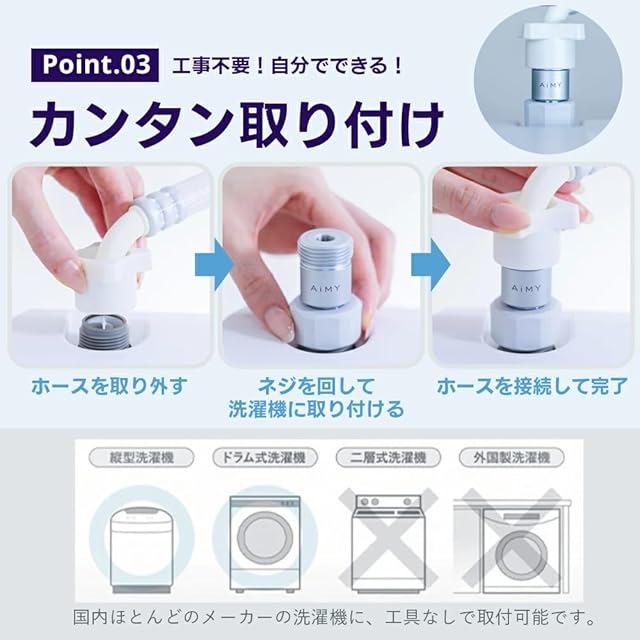 商品名:【2025年NEW】洗濯アダプター 洗濯 マイクロナノバブル シャワー 母の日 水栓 節水 洗濯用 洗濯 除菌 衣類 汚れ 洗濯槽 カビ 新生活 ギフト プレゼントナノバブルウォッシュ2.0 AIM-MS03 水生活製作所AiMY エイミー