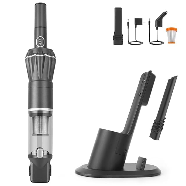 LNSOO ハンディクリーナー 掃除機 ハンディ コードレス 車用掃除機 15000pa パワフル 吸引 30分間連続稼働 コンパクト 0.5kg 超軽量 スタンド 業務用/キーボード掃除/車内清掃/家具/家庭用 グレー K12