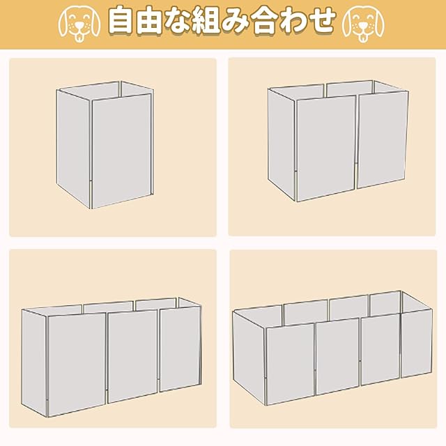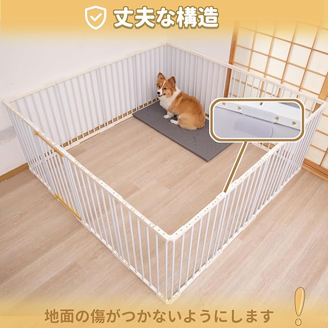 【広大な空間&自由組み合わせ】ペットサークル 室内:アイディアに合わせてさまざまな接続方法を設計し、使用環境に応じて12つのパネルを活かして、長方型、正方型、八角型、L字型などに変更できます。さらに、ジョイント式ペットフェンス、省スペースに対応し、形を変えられるため4面、6面、8面、10面、12面、16面に対応。
