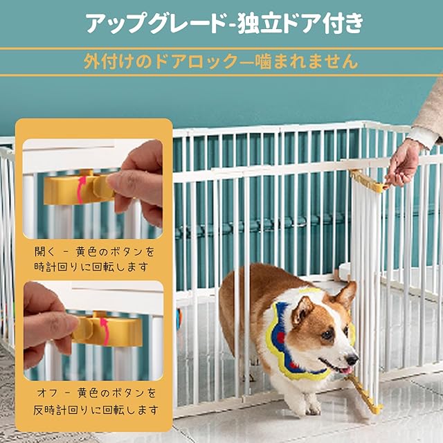 【アップグレード-外付けドアロック付き】: 16枚のうち1枚はロック式ドアが付いていますので、出入りする際に便利です。ドアロックは手軽に開閉できることを目的にした単ロックではなく、単独のドアデザイン、ペットの逃げを防ぐ。少し高さがあるので、ドアの開閉時にペットが急に飛び出してしまうのを防止します。