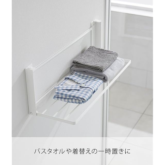 商品名:山崎実業(Yamazaki) 【 石こうボードピンセット・木ネジ 付属 】 ウォール 折り畳み バスタオルラック 石こうボード壁対応 ホワイト 使用時:W65.5×D22.5×H22cm タワー tower バスタオルが干せる ワイドサイズ 折り畳み棚 1941