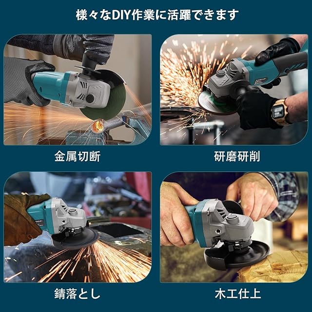 【安全安心な使用】 安全性にも考えて、保護カバーは火花を防ぎ、手の安全を確保し、様々な角度でも簡単に作業できます。優れた冷却構造を採用し、過負荷防止できます。グリップ部の軟質ゴムは防塵で滑り止め、落下を防ぎ、傷害を防止します。安心なサポート、商品と使用は何か問題がありましたら、商品ページの右に「販売元」>ブルー「セラー名」をクッリクし>出品者に「質問する」からお問い合わせ下さい。