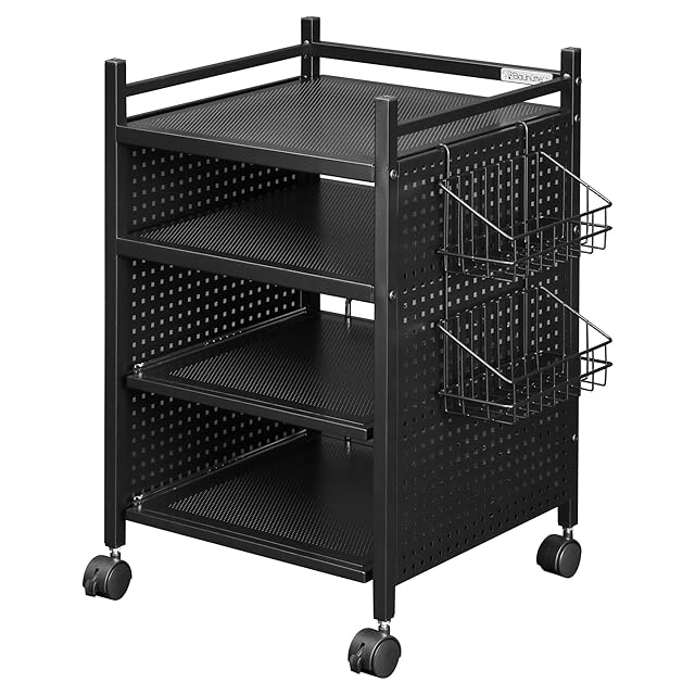 棚板にはパンチングボードを採用、ハードの排熱を阻害しにくい設計です。