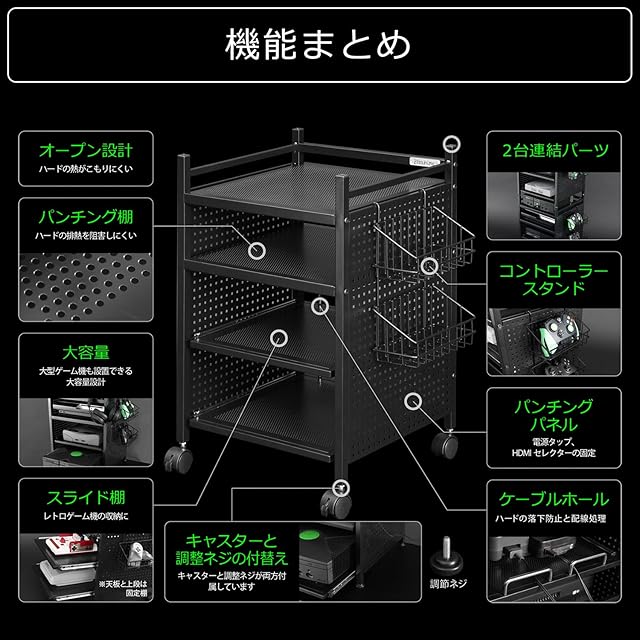 2台を縦に連結できるので、かさ張るゲーム機もすっきり収納できます。