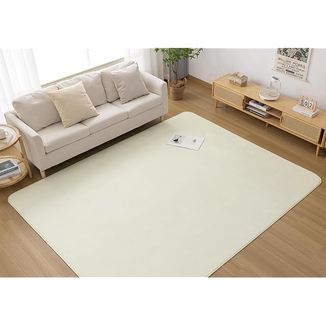 商品名:Housecover カーペット ラグ ラグマット滑り止め付 洗える 200×250cm 約3畳 絨毯 防ダニ 抗菌 防臭 オールシーズン快適に使用 床暖房 ホットカーペット対応 ふわふわ肌触り フランネルラグ 無地 アイボリー01