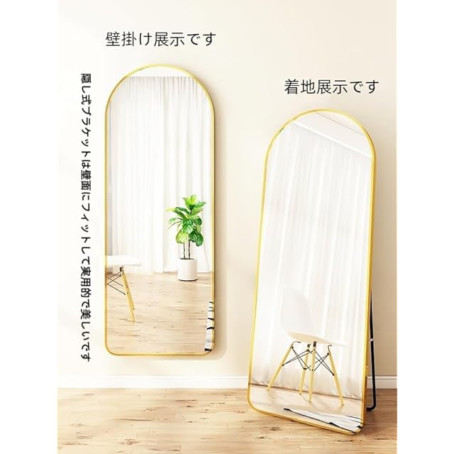 <b>仕様</b> <br>サイズ:幅40×高さ150cm全身鏡 <br>フレームカラー:黒・金・白 <br>角のタイプ:アーチ型 <br>フレーム材質:アルミ合金 <br>ガラスの厚さ:5mm <br>使用方法:スタンド、壁掛け <br>本体重量:約7kg <br> <br><b>ハイビジョン全身鏡</b> <br>透明度の高いガラスを採用し、ガラスの表面には銀メッキとアルミ膜塗装を施すことで、一般的な全身鏡と比べて、リアルで美しい映像を反映されます。 <br> <br><b>飛散防止加工</b> <br>スタンドミラーは飛散防止加工を採用し、万が一鏡が割れても破片が飛び散りにくい。 <br> <br><b>アルミニウム合金枠</b> <br>全身鏡のアルミ合金フレームは丈夫で耐久性があり、色褪せにくい、変形せず、長く使用しても相変わらずスタイリッシュで美しい、温かみと高級感を感じさせます。 <br> <br><b>全身チェック</b> <br>幅45×高さ155cm、全身がすっぽり入る大型ミラーなので、足元までしっかり全身をチェックでき、身だしなみにも一層気持ちがこもります。 <br> <br><b>折りたたんで隙間に収める</b> <br>折りたたむと厚さ4cmになり、使わないときはデスクや壁などのすき間に収納できますので、一人暮らしの省スペースなお部屋でも圧迫感なくご使用いただけます。 <br> <br><b>ウォールミラー</b> <br>この全身鏡の裏面には壁掛け用金属ホックがあり、ミラーを好きなところで掛けることができます。 <br> <br><b>スタンドミラー</b> <br>壁に穴を開けたくない場合、壁に寄りかかったり、自分の部屋に勝手に置いたりするのも便利なスタンドミラーです。自分の好みやニーズに合わせて、鏡の位置を自由に変えることができるので、使い勝手も良いです。 <br> <br><b>適用場合</b> <br>自宅用、トイレ・玄関・洗面・ベッドルーム・リビングなど、学校、事務所、オフィス、美容室、ショッピングモール、洋服屋さん、更衣室などさまざまなシーンに適用いただけます。 <br> <br><b>ご注意</b> <br>1. 仕様やデザイン等は予告なく変更される場合がございます。 <br>2. サイズに関しましては素人採寸のため、多少の誤差が生じる場合がございます。 <br> <br><b>ご購入</b> <br>商品の品質には万全を期しておりますが、万一製品に不具合が発生した場合は、お手数をおかけますが、何卒ご注文番号を添えて当店までご連絡くださいますようお願い申し上げます。