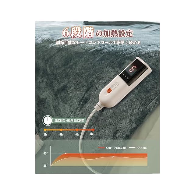 【インテリジェントな温度調整】:ボタン1つで6段階の温度設定が可能。 電気毛布の温度を自由に設定できます。この電気ブランケット、絶縁毛布カバー全体を通る高品質のヒーターワイヤーを装備しています。