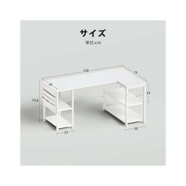 商品名:YeTom ゲーミングデスク l字デスク机pcデスク幅130cm パソコンデスク勉強机学習机 左右入替可棚板高さ調節可能 収納袋付き オフィスデスク ワークデスク白い