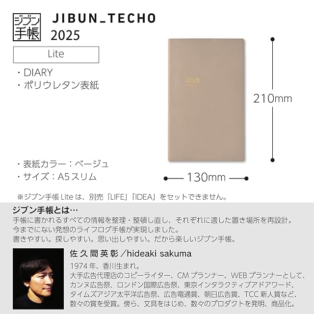 商品名:コクヨ ジブン手帳 Lite 手帳 2025 マンスリー ウィークリー A5 スリム ベージュ ニ-JL1LS-25 2024年 12月始まり