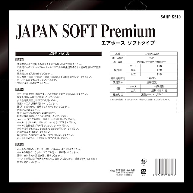 商品名:SK11(エスケー11) ジャパンプレミアム エアーホース ソフトタイプ 内径6.5×外径10mm 10m SAHP-S610 日本製