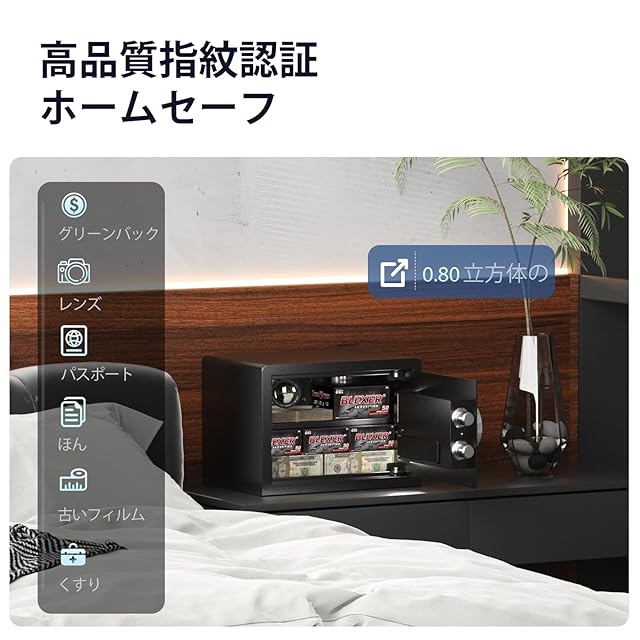生体認証クイックアクセス機能: 高精度生体認証センサー搭載のホームセーフは、最大30件の指紋登録が可能。認証反応速度0.3秒未満の即応性で、初期設定必須の厳格なセキュリティ設計。家族の指紋を個別登録できる多人数対応仕様