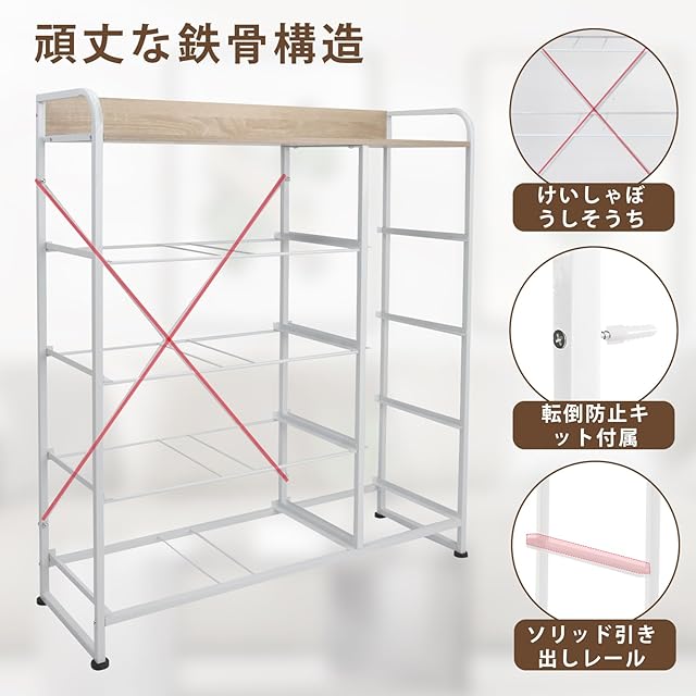 安定した構造:タンスの脚部にアジャスターが付いており、高さが調整できる機能があり、床を傷つけるのを防ぎます。転倒防止も十分に考慮されており、ご家庭でも安心してお使いいただけます。1.5CM*1.5CMでのフレームやX字補強ワイヤー構造で安定感がUP!