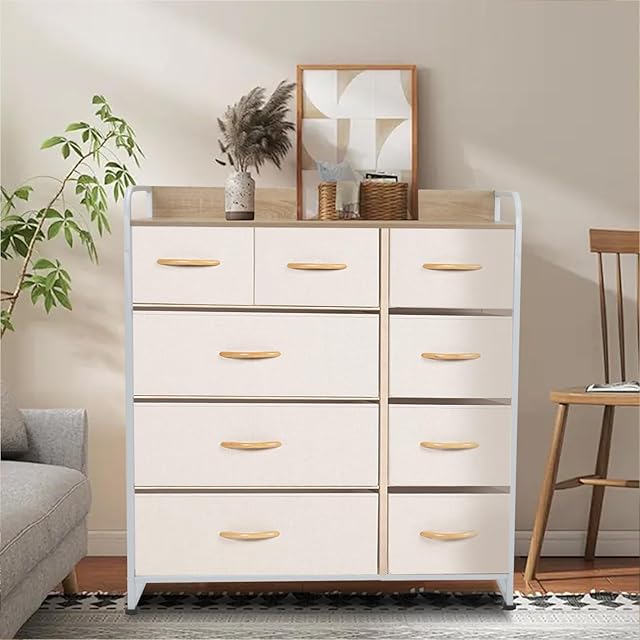 ClutterFree タンス 収納 チェスト 布製 引き出し 洋服収納 リビング収納 大容量 衣類収納 洋服タンス 衣装棚 箪笥 木製天板付き 簡単組立 多機能 転倒防止 AG-CTG01 (4段9杯 白+白)