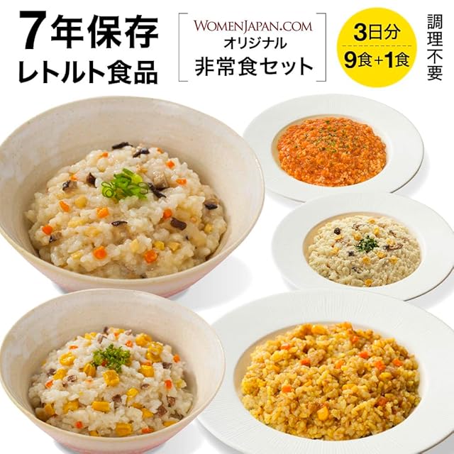 7年保存 非常食 3日分 9食+1食(10食)セット WOMENJAPAN.COM オリジナル 保存食 防災食 非常食 セット ご飯 ごはん 防災 セット 長期保存 防災食セット 災害食 備蓄食 備蓄品 備蓄 食料 アウトドア