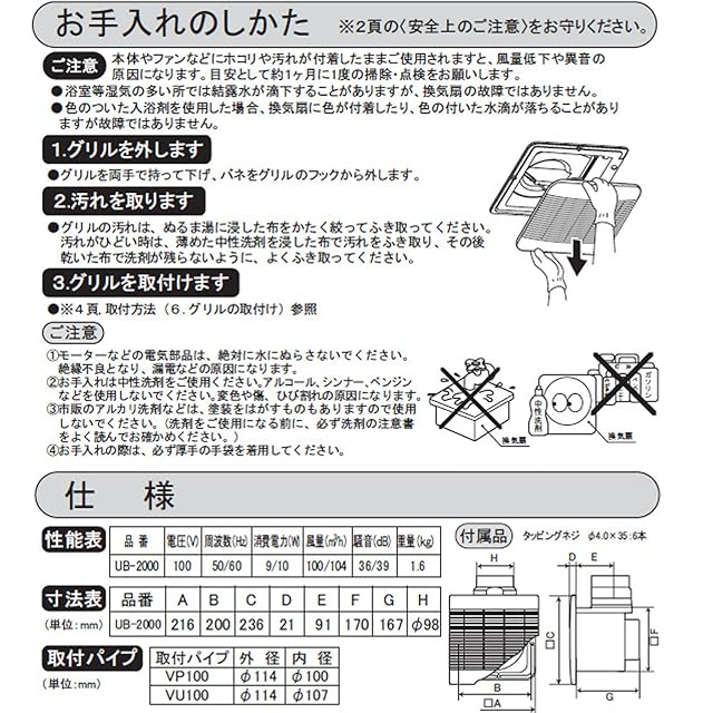 風量(50・60Hz):100立方m/時・104立方m/時