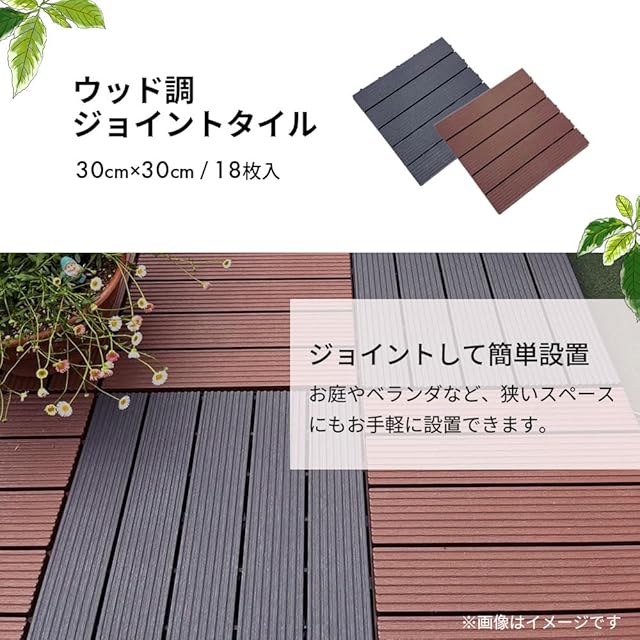 天然木のような風合いのウッド調タイル。 高品質な樹脂を使用しており耐久性にも優れています。 ささくれや退色が少なく、虫が付きにくいのが特徴です。