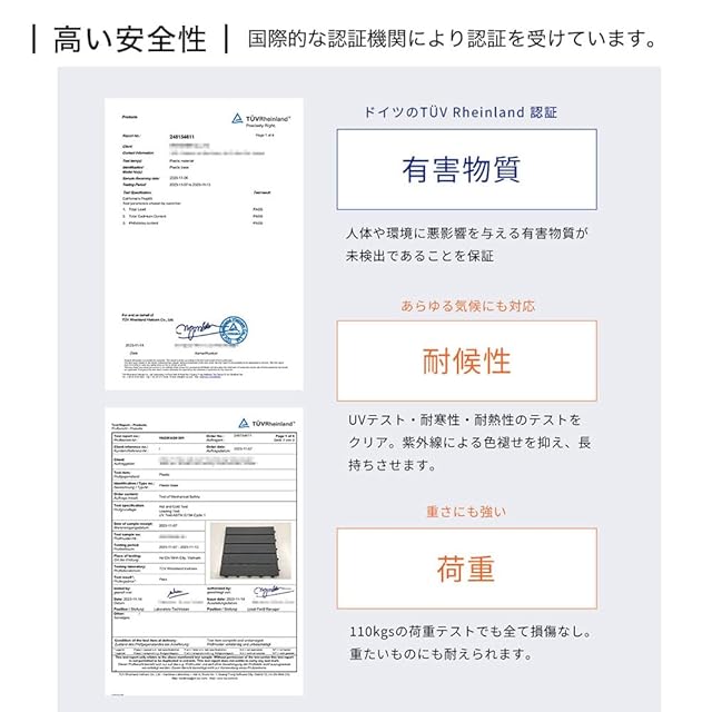 TUV Rheinland認証 人体や環境に悪影響を与える有害物質が未検出であることを。 安全性の認証を受けています。