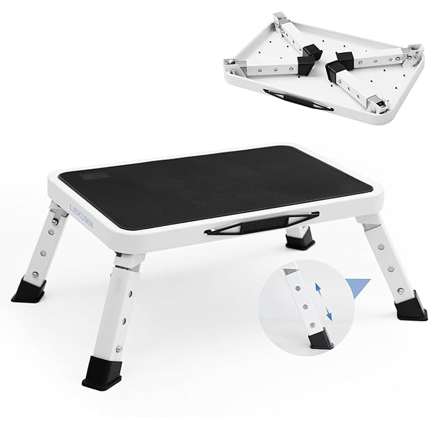 LIEKUMM 踏み台 スチール製 脚立 折りたたみ 高さ17.5-23.5cm 三段調整可能 踏み台 150kg 耐荷重 ステップ 掃除用 車 乗り降り 作業台 トイレ 浴室 滑り止め 伸縮脚立 収納便利 黒