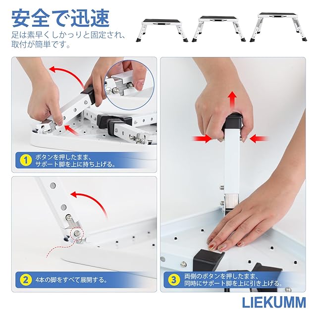 伸縮のデザイン: 当社の踏み台の脚立はスチール製で、もっと頑丈で耐用です。サポート脚にボタンが付き、例のボタンを押したままに脚を引っ張って高さを調整できます。