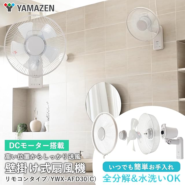 商品名:[山善] 壁掛け扇風機 DCモーター 静音 左右自動首振り 風量3段階調節 お手入れ簡単 切タイマー リモコン付き 脱衣所 洗面所 換気 グレージュ YWX-AFD30(C)