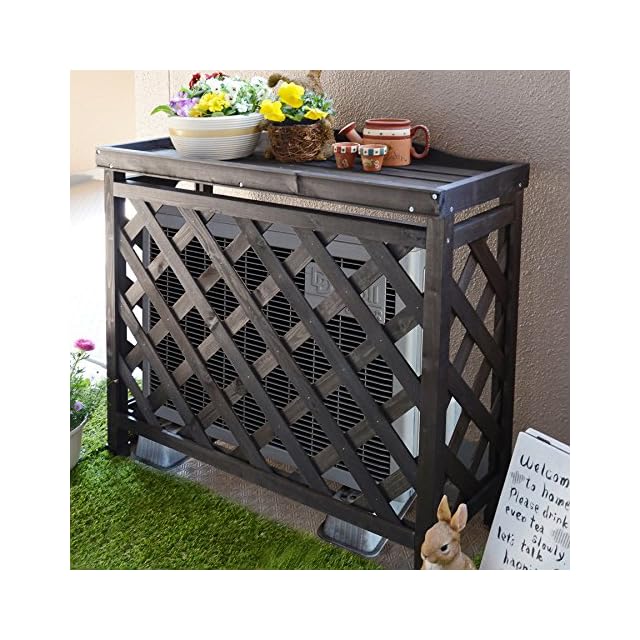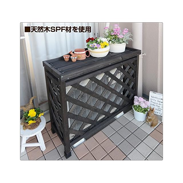 商品名:ガーデンマスター(Gardenmaster) エアコン室外機カバー 幅87×奥行35×高さ82cm 天然木SPF材 エアコンガード ベランダ バルコニー ガーデンマスター ダークブラウン KOAC-8735