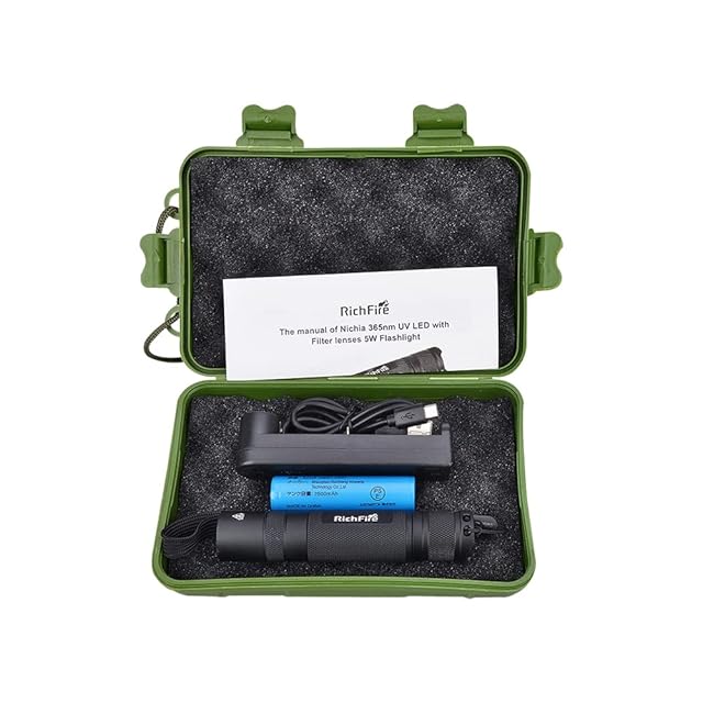 日亜化学ランプ UV 365nm 業務用ブラックミラーUVライト懐中電灯 樹脂用硬化ライト ブラックライト 小型軽量<br> 1 x UVトーチ <br> 1 x 18650(2500mAh) リチウムイオン充電池<br> 1 x USB充電器 <br> 1 x ギフトボックス