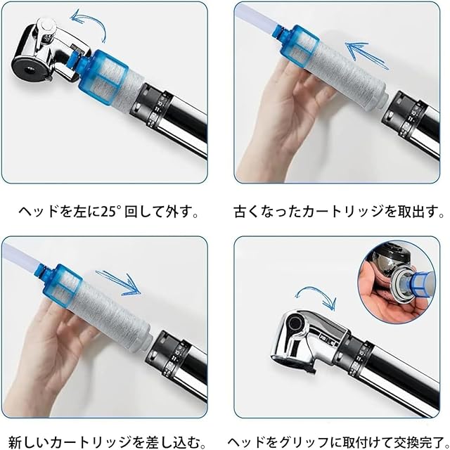 フィルターカートリッジの交換の目安: 約4ヶ月に1回(1日10リットル使用時)使用水量、水圧、水質などにより異なります)