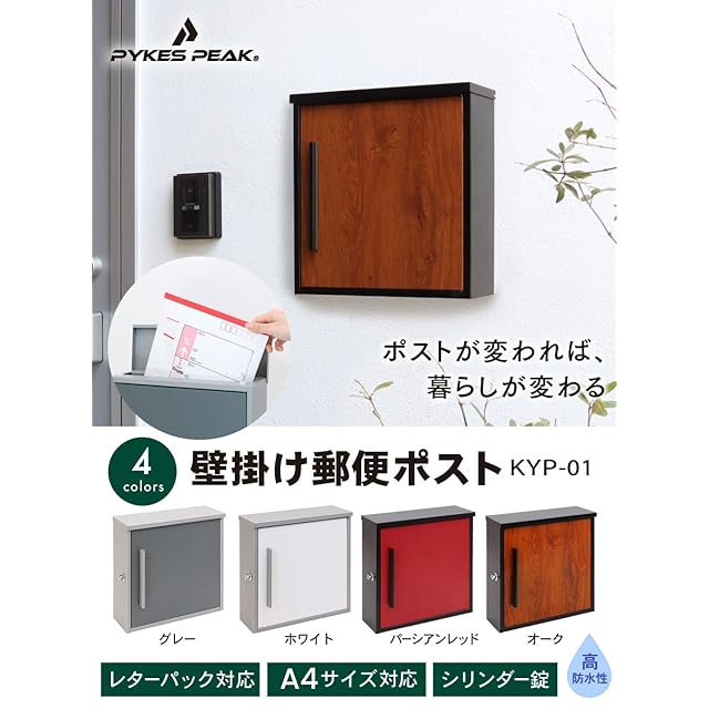 PYKES PEAK(パイクスピーク) 壁掛け 郵便ポスト 郵便受け KYP-01 A4 レターパック対応 大型 ポスト 縦型 鍵付き (オーク)
