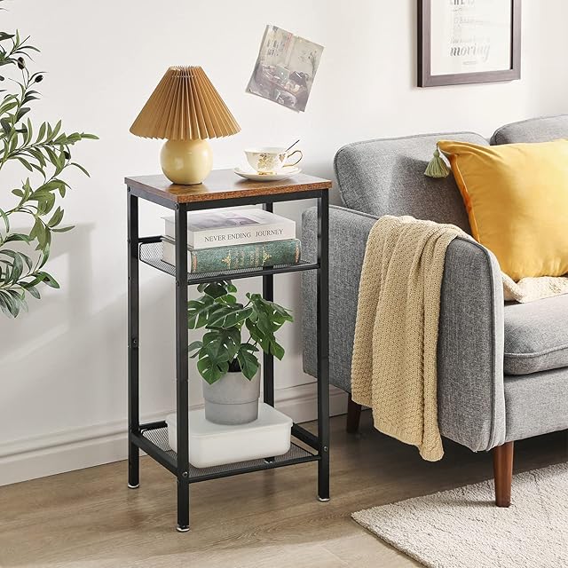 商品名:YMYNY オープンシェルフ サイドテーブル 3段ラック スリム 金属フレーム ヴィンテージ風 オープンラック ナイトテーブル コーヒーテーブル ミニテーブル キッチンワゴン 収納棚 飾り棚 小物置き スチールシェルフ コーナーラック 組立簡単 多機能収納ラック 幅38×奥行28×高さ73cm 茶色 JPHST005H