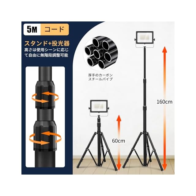 【調整可能な高さ】この三角支架は、高さを自由に調整できる機能を持っています。利用者のニーズに応じて、最適な照明位置を設定できるため、様々な用途に対応できます。特に、作業環境では、灯の高さを調整することで、照明を必要な場所に直接当てることができ、作業効率を向上させます。また、イベントや展示会では、観客や来場者に向けて最適な高さで光を提供することで、視認性を高めることが可能です。この調整機能により、個別のニーズに対応できるため、どんなシチュエーションでも柔軟に対応できる点が魅力です。使い方に合わせて調整できることは、非常に大きな利点となります。